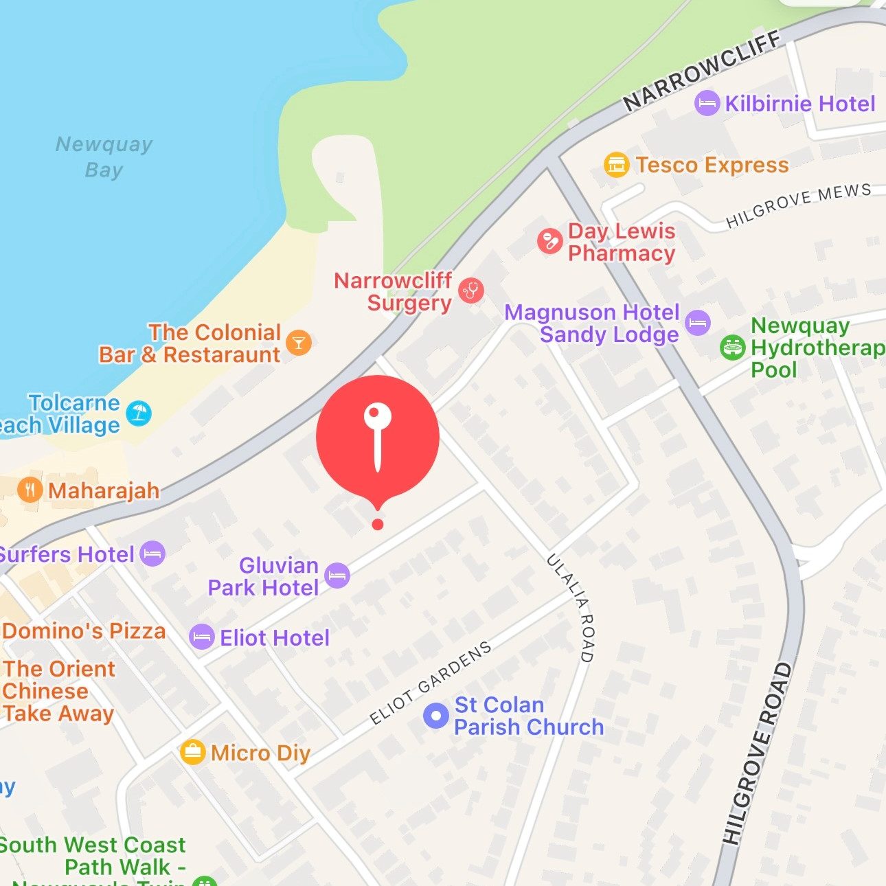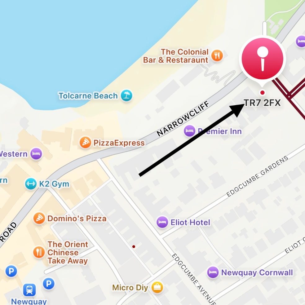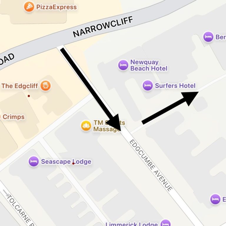 *As of 26/03/26, emergency road closures on Ulalia road mean that you must use an alternate route to access the building. If you are driving down Narrowcliff (seaside), please turn into Edgcumbe Avenue and take the first left (small lane), then proceed down all the way, and you will eventually find the Cliff Edge courtyard gates. Please find annoted maps at the bottom of the page.*